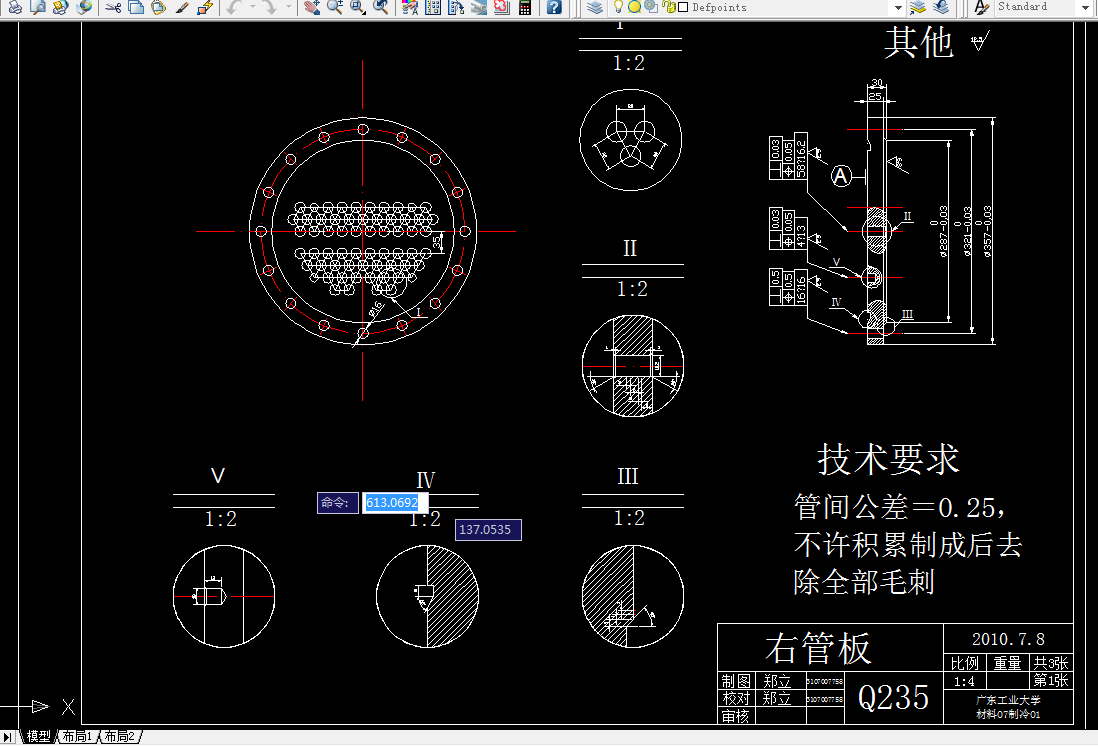 本次课程设计是设计一台制冷量为85KW的满液式蒸发器。本设计是在给定条件:蒸发器制冷量 =80KW,制冷剂温度:蒸发温度 =2℃,冷凝温度 =40℃,制冷剂为R22。冷媒水进口温度 =12℃,冷媒水出口温度 =7℃下进行的。本次设计选用office,Auto CAD等软件,设计过程主要包括热力计算,传热计算,结构设计计算,流动阻力计算等。整个设计过程先从热力计算着手,接着进行传热计算,然后进入结构设计计算,在结构设计计算中,采用估值法,严格按照国家标准选取零部件,强度计算与强度校核交叉进行,最后通过流动阻力的计算确定压降。本次设计的设计内容包括了换热管和流程数的选取,换热管的布置排列,管长的选取,筒体、端盖、法兰螺栓、管板和垫片等零部件的选取。本次设计涉及了《传热学》《制冷原理与设备》《热交换器原理与设计》《流体力学》以及《画法几何》等多学科的基础知识和工艺参数的选择。通过这些计算,最后设计出一个两流程的,换热管长度与壳体内径之比为9.58的满液式蒸发器。