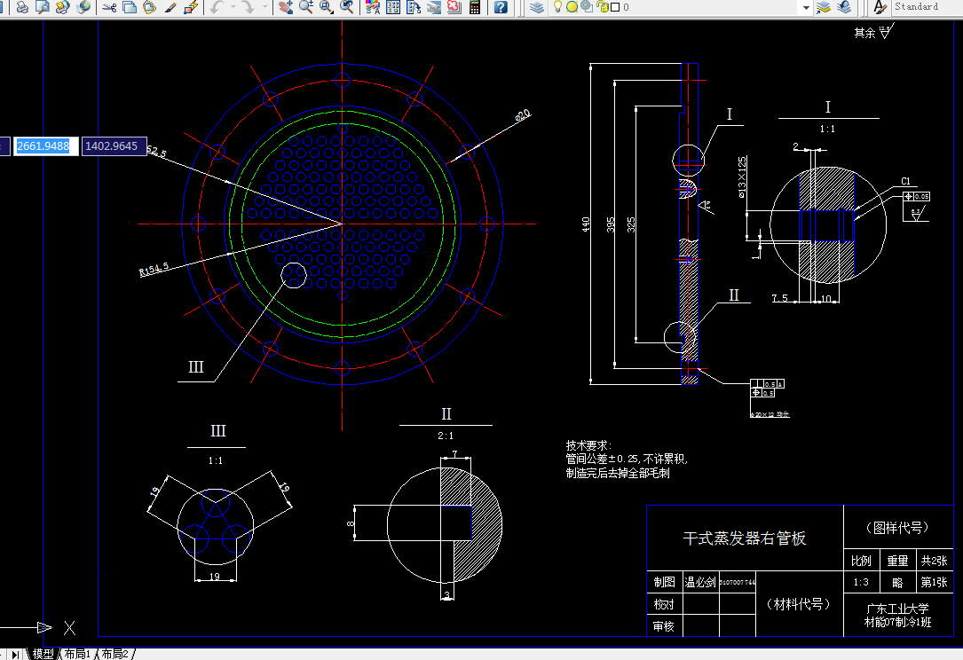 本次课程设计是设计一个35KW的壳管式干式蒸发器。本设计是在蒸发器制冷量 =35KW,制冷剂温度:最低蒸发温度 =2℃,冷凝温度 =40℃,过热度为3℃,制冷剂为R22,冷媒水进口温度 =12℃,冷媒水出口温度 =7℃的条件下进行的。