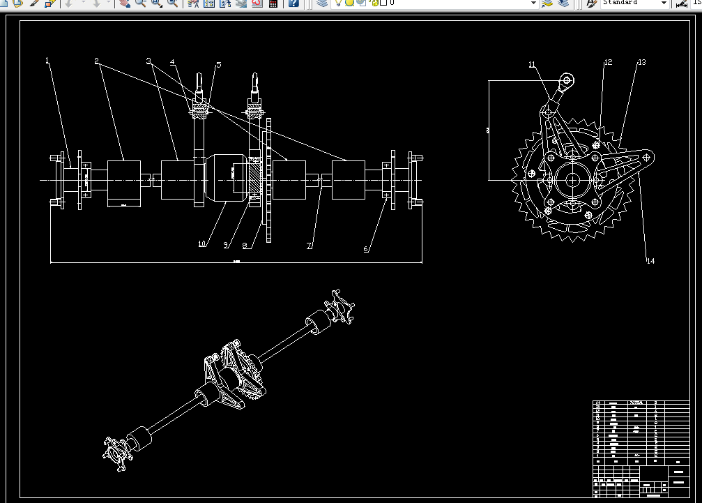 利用CATIA软件画出了所有零部件的三维视图,并对其中关键部件进行了强度分析校核。尤其对于自制件,根据不同工况,对其进行了有限元分析,从而实现优化。并利用CAD对主要零部件绘制了工程图,确保所设计零件能够满足实际要求。