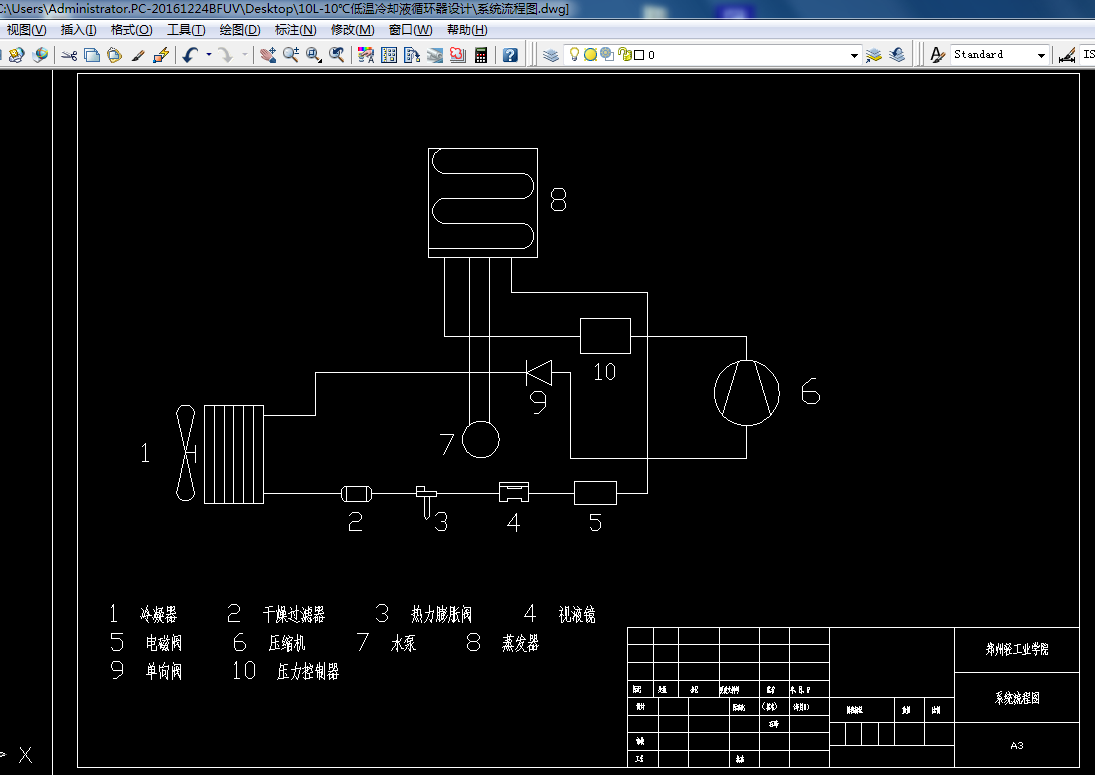 本设计主要关注的是制冷剂的选择和制冷系统中各部件的设计及选取。由于现如今“温室效应”和臭氧层破坏等环境问题的日益严重,采用环保型制冷剂已是迫在眉睫,本文中选取R407C 作为制冷剂。制冷器件的选择包括全封闭活塞式压缩机的选型与校核,风冷冷凝器的设计,套管式蒸发器的设计,热力膨胀阀的选型以及其他辅助设备的选取等。