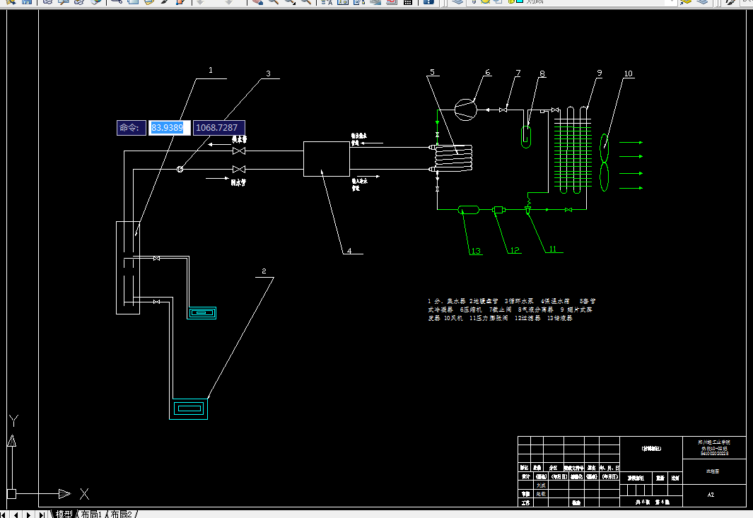 本次空气源热泵水地暖系统的设计,通过实际计算比较了理论循环和实际循环之间的差异,对冷凝器和蒸发器进行了计算和选材,并且对压缩机、节流阀等零部件进行选型。在对水地暖进行全面了解的基础上进行了实际的绘图操作。