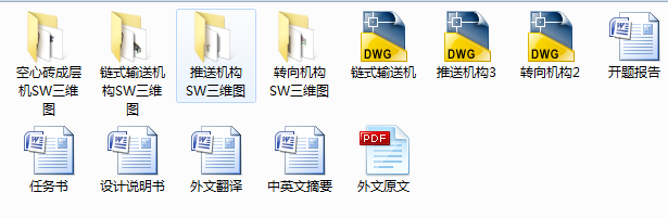 设计从空心砖及空心砖成层机的发展概况等着手,分析了各部分的特点及加工要求,从而确定了总体的设计方案,继而分别对顶滚链式输送及辊式推送、砖层转向机构等一系列部件进行了具体分析计算,确定了其设计方案。本设计对主要构件进行了功能及力学性能的分析。确定尺寸,然后进行三维建模、导出CAD图,对皮带轮的建模过程进行了详细的描述,对主动轴做了全面的静力学分析。