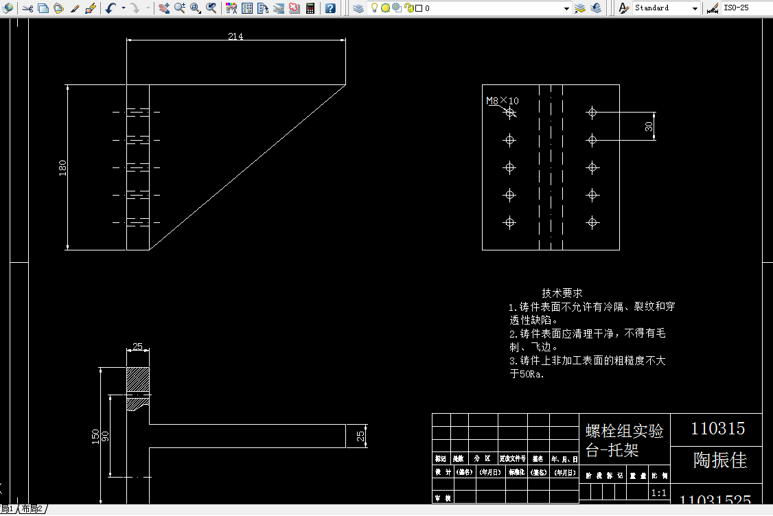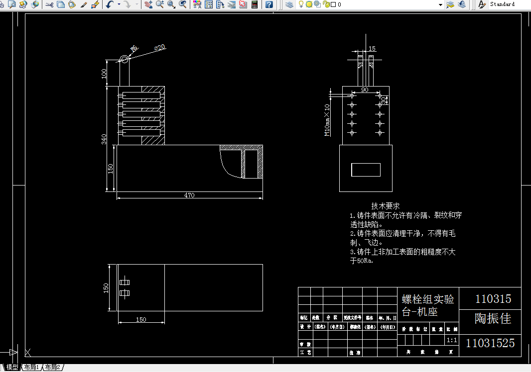 摘要:螺栓组联接实验台是参照HT-2设计,该试验台由机座、托架(被连接件)、螺栓组以及加载装置等部分组成。实验台采用的是10个相同的螺栓分两排均匀排列,讲机座联接起来而构成。加载装置是由两级杠杆和砝码组成。