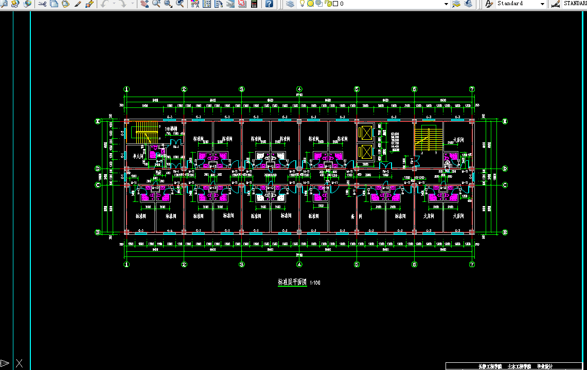 结构设计采用手算一榀框架,考虑多层结构抗震要求,作了抗震验算,在结构上,作了结构的抗震结构设计,这样,可以有效达到“大震不倒,中震可修,小震不坏”的目的。