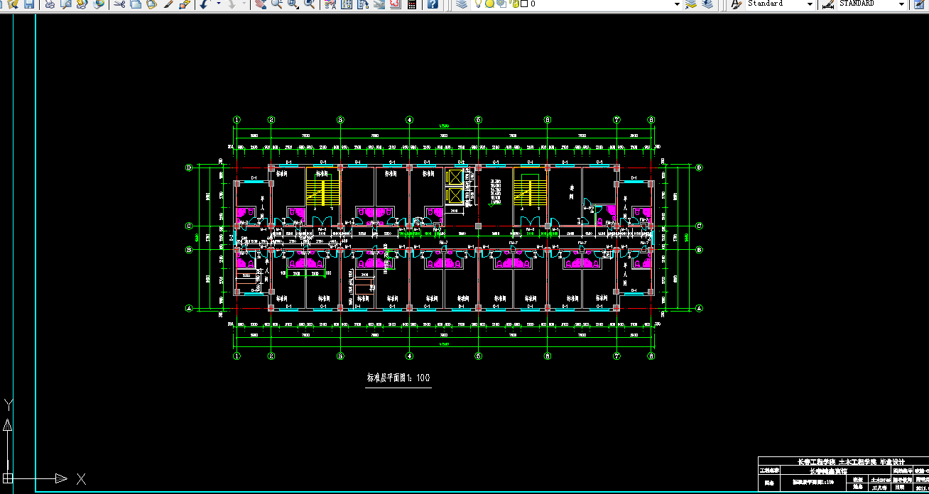 结构设计部分根据建筑设计方案,进行楼盖、楼梯、框架结构和基础结构计算。框架计算采用手算一榀框架,考虑多层结构抗震要求,作了抗震验算,在结构上,作了结构的抗震结构设计,这样,可以有效达到“大震不倒,中震可修,小震不坏”的目的。