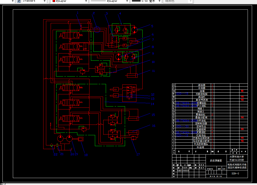 本次毕业设计的主要目的是熟悉机械设计的一般过程,提高理论知识和实践知识的综合运用能力。挖掘机是一种重要的工程机械,它的广泛应用对于减轻劳动量,保证工程质量,加快工程进度,提高劳动生产率起了巨大的作用。此次的毕业设计主要是针对液压机械挖掘机的行走装置进行设计。轮式液压挖掘机的行走装置有液压泵,液压马达,减速器,轮边减速器,转向器等系统组成。液压系统是按照挖掘机各个机构和装置的传动要求。把各种液压组件用管路有机的连接起来的组合体,其功能是将发动机的机械能转化为液压能,经过传送后,再将其转化为机械能,以完成各种动作。