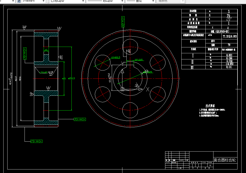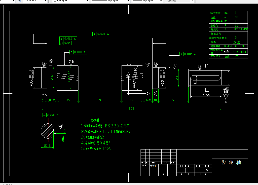 (5)绘制减速器齿轮及轴的零件图各1张(A2)