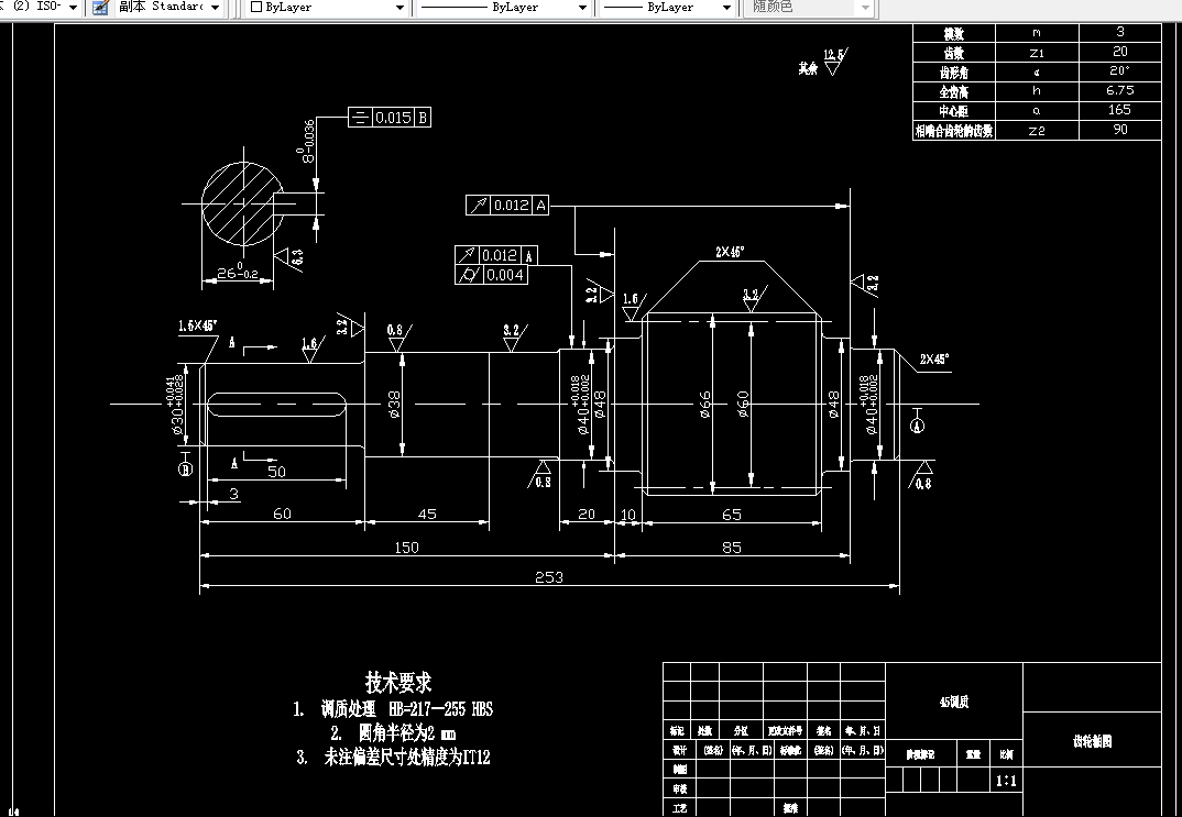 2. 轴、齿轮零件图纸各一张(2号或3号图纸)