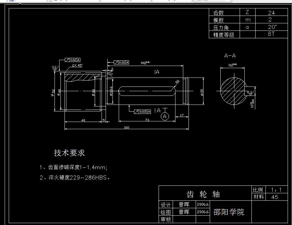 2.1 电动机轴齿轮的设计…………………………………………………………6