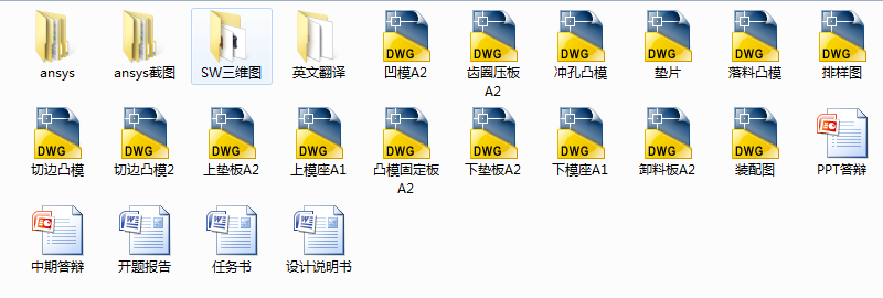 本论文设计的是一套精密冲裁级进模模具。首先对精冲模具作了简单的介绍,也对其现状和发展前景作了分析。其次,是进行零件的工艺性分析,确定工艺方案。再次,对精冲三向力进行计算,分别算出冲裁力、压边力、反压力、卸料力和顶件力。同时还需要计算精确的模具刃口尺寸,才能达到零件的要求。由于冲裁零件的主要工作部分是刃口,刃口处的精度就确定了零件的精度,所以必须根据公差来进行精确分析。采用有限元方法分析凸凹模的受力,在满足冲裁要求的前提下,优化凸凹模刃口的材料,尺寸,结构,提高模具质量及寿命。最终,计算得到的模具刃口尺寸,并选取精冲模具的标准件,进行最后的整体装配。