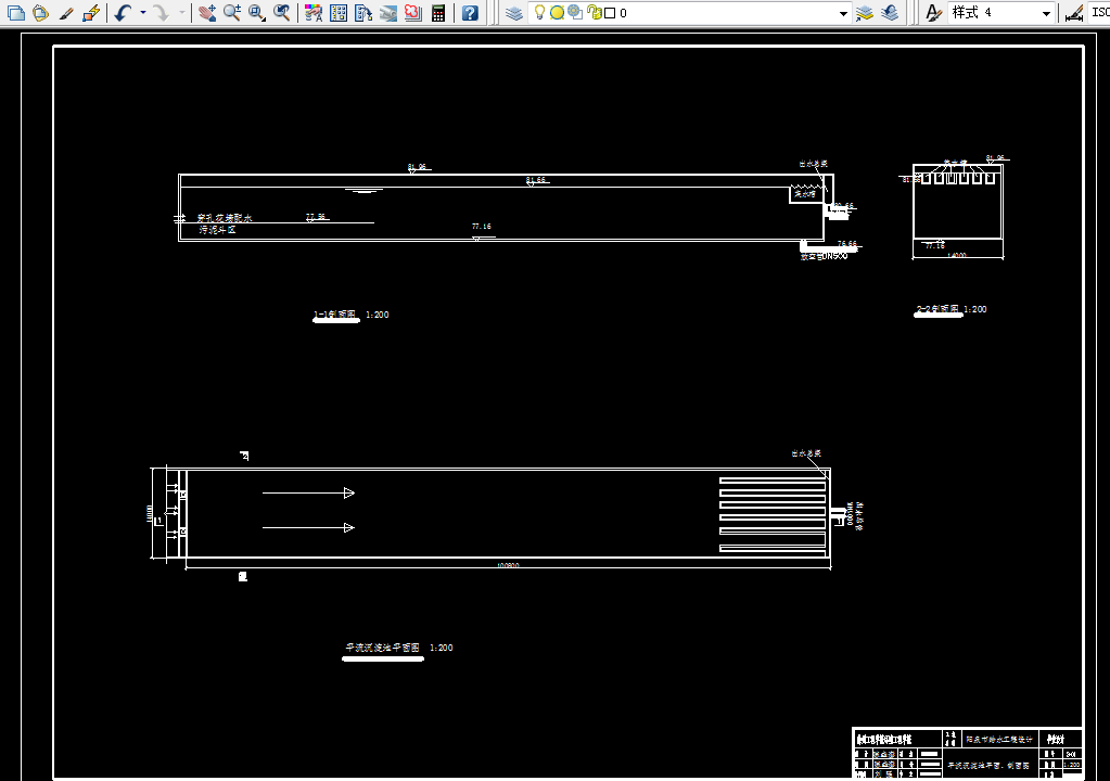 平流沉淀池设2座,设两组平流沉淀池,一系列反应池对应一个沉淀池,则单池流量Q为2078m3/h,即0.577m3/s,每组平面尺寸为100.8 m×14m,总深3.9m。水平流速0.014m/s,停留时间2 h。沉淀池进水采用穿孔花墙配水,孔口流速为0.2 m/s。