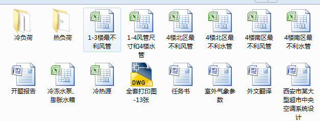 本工程设计对象为西安某超市,此建筑楼主要有商场、员工生活居住层。本工程空调设计的内容包括本大厦的中央空调系统的设计及通风设计。1-3层采用全空气系统,4层采用风机盘管+新风系统,风系统设计为一次风回风系统。机房将布置于各层空调机房内。