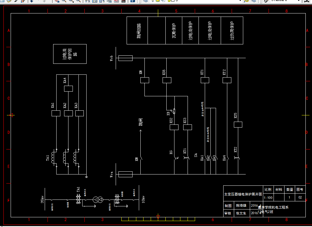 [摘要] 机械厂变电所电气部分设计,重点研究大型工厂的降压变电所电气部分的初步设计。通过分析原始资料求得各车间的计算负荷,并对相同负荷等级的车间进行归类。求出无功功率所需的补偿容量,确定变压器的容量及其型号。根据安全、可靠、灵活、经济的运行特点,列出多种主接线方案,对比选取最优方案。利用标幺值法进行短路计算,并对导线、断路器、隔离开关、熔断器、电压互感器、电流互感器等电气设备的选择校验作了详细的说明和分析。根据主变压器的容量选择合适的继电保护方案并进行了继电保护的整定计算。本文中对于二次回路的测量和监察图采用VISIO软件进行绘制,对于变电所的主接线图和主变压器的继电保护配置图则通过AutoCAD软件直观的展现出来。