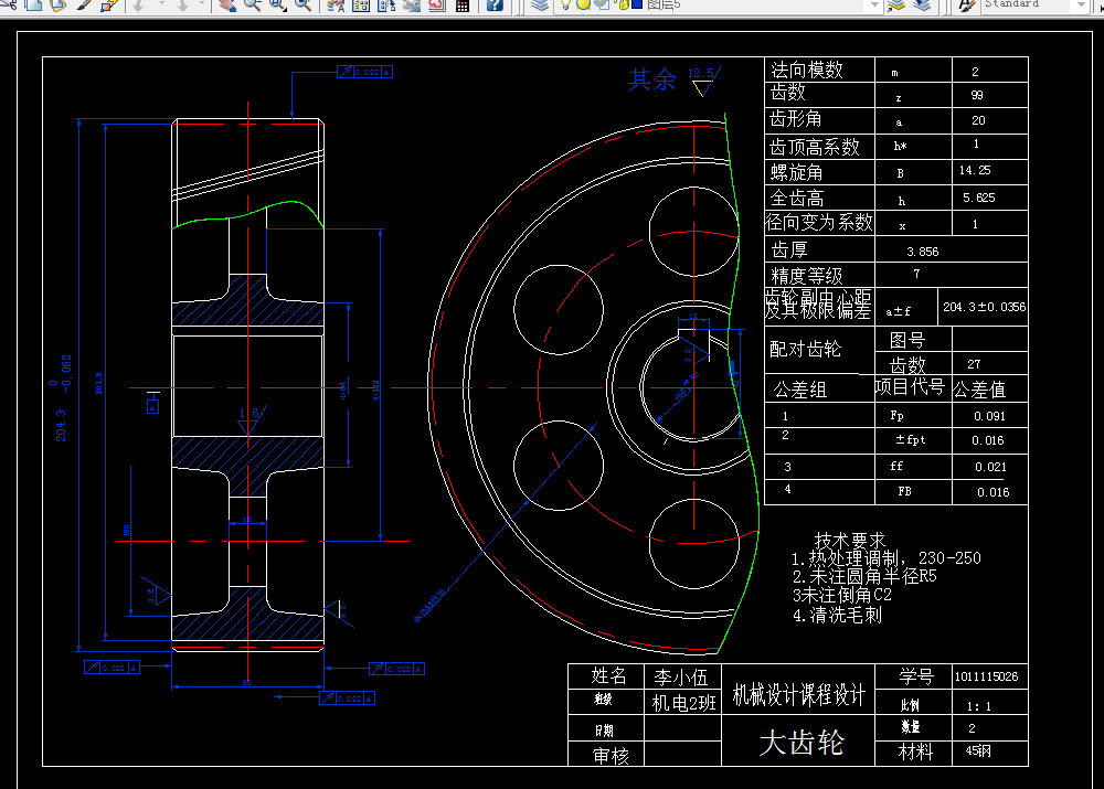 2轴(中间轴)及其轴承装置、键的设计………………………21