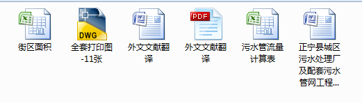 其中包括英文翻译一篇,设计说明书及计算书一份,设计图纸一套,共11张(污水管网规划总平面图 、污水主干管纵断面图污、水处理厂总平面图、污水处理厂总高程图、各级处理单元构筑物平面图剖面图、污水处理厂内提升泵房平立剖面图、各系统内的设备计算及选型表、必要的设计详图)。