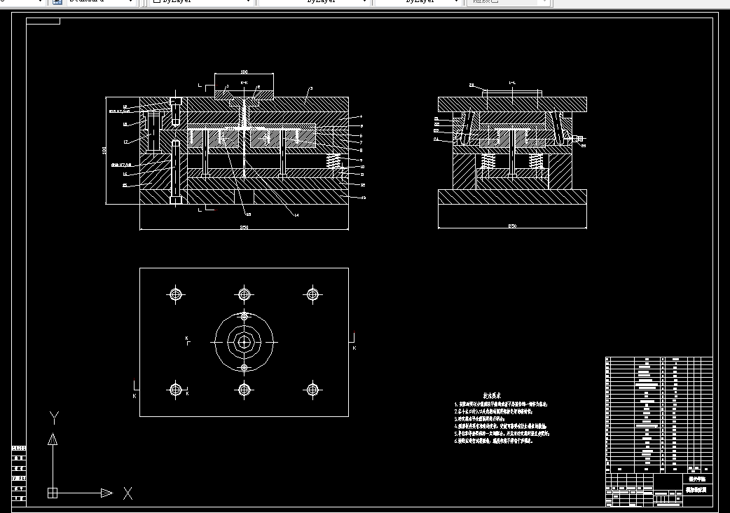 考虑到塑件的精度要求、产量要求等,本次设计采用了一模两腔,除了最大面积的水平分型面,还采用了两侧的斜导柱侧向分型与抽芯机构;分流道采用平衡式对称分布;通过四组导柱和导套防止推杆歪斜。