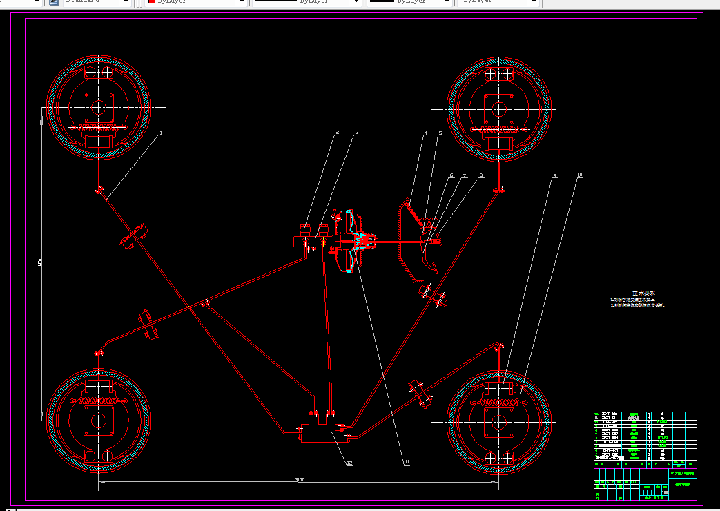 设计所附的多张图纸对设计的思想、制动系统的布置设计表达的非常清晰。希望在翻阅说明书的过程中能够结合图纸,这样就可以更加有效的理解设计的思想和意图。