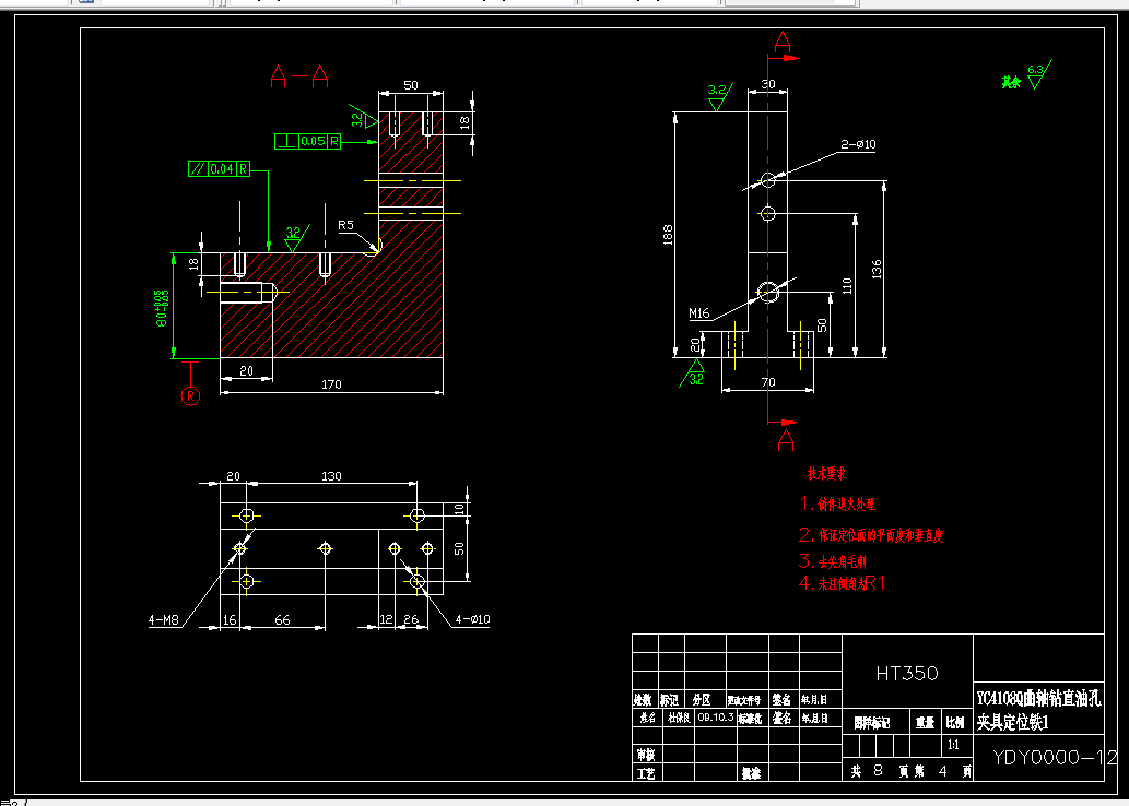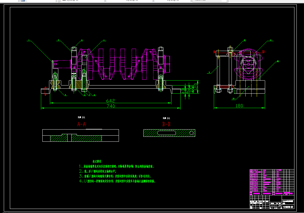 在夹具的设计过程中,主要以V形块和支承板来定位,靠直压板和螺母来夹紧,钻直油孔时应采用长型快换钻套,铣键槽时采用立式铣床,曲轴小头处应安装一个对刀块,夹具设计要方便、简单。