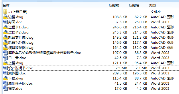 本文对轮毂进行实体造型更形象的了解轮毂的外形。并主要从摩托车轮毂的发展状况、铝合金的成型与铸造方法、低压铸造的工艺及特点,模具总体方案的选择以及模具结构的设计等方面介绍了轮毂低压铸造的模具设计。
