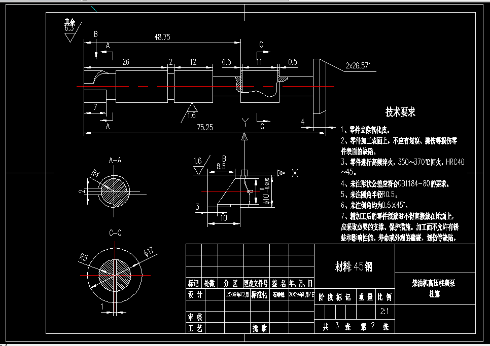 本文根据某柴油机的性能参数来进行喷油泵的结构设计,主要设计内容有:根据实际情况对喷油泵形式进行选择,可以选出本次设计喷油柱塞直径及压缩行程;根据供油需求,选择合适的出油阀,拟定出油阀弹簧安装高度及中径,配以合适的油阀开启弹簧;而又要保证柱塞克服惯性力,摩擦力及负压的影响,给柱塞配以合适回正弹簧,拟定拟定回正弹簧的安装高度及中径,并进行稳定性及强度校核;在回正弹簧确定之后,就可大致得出柱塞的长度,通过画装配图,再详细设计出柱塞的实际长度;在喷油泵设计中,还应根据上面的计算选择符合标准的的类型以及相应尺寸。