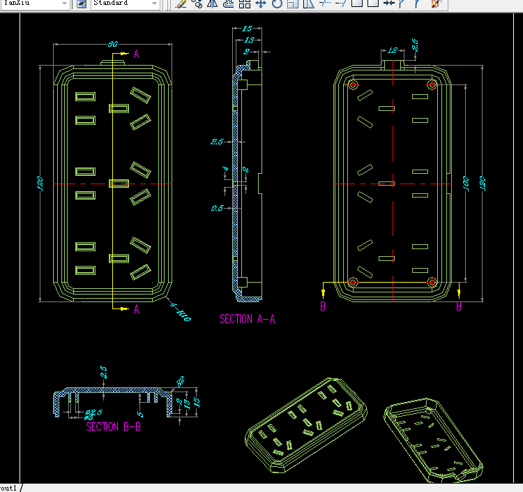 根据塑料制品的要求,了解塑件的用途,分析塑件的工艺性、尺寸精度等技术要求,考量塑件制件尺寸。本模具采用一模两腔,侧浇口进料,注射机采用HTF80W1×B型号,设置推出机构和冷却系统,运用MoldFlow进行模流分析,CAD和UG绘制2D/3D总装图和零件图,选择模具合理的加工方法。附上说明书,系统地运用简要的文字,简明的示意图和和计算等分析塑件,从而作出合理的模具设计。