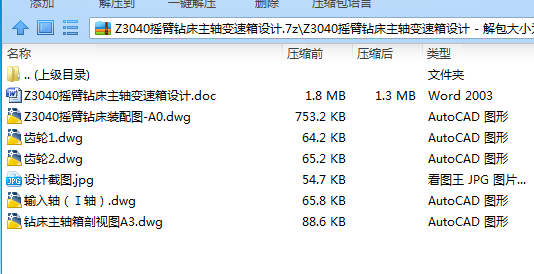 本课题主要是进行Z3040摇臂钻床主轴箱设计,其中Z3040摇臂钻床主要由立柱,摇臂,主轴箱,和底座等部分组成。重点是要考虑主轴箱结构、尺寸、体积、等综合因素,设计出正确的结构分析式,绘制出正确的传动系统图,从而完成机床整体布局的设计,然后通过齿轮设计、键及轴承的选择、轴的设计以及其他一些附件设计,最后校核轴设计和键轴承选择的正确性与合理性,完成钻床主轴箱体传动系统的设计。