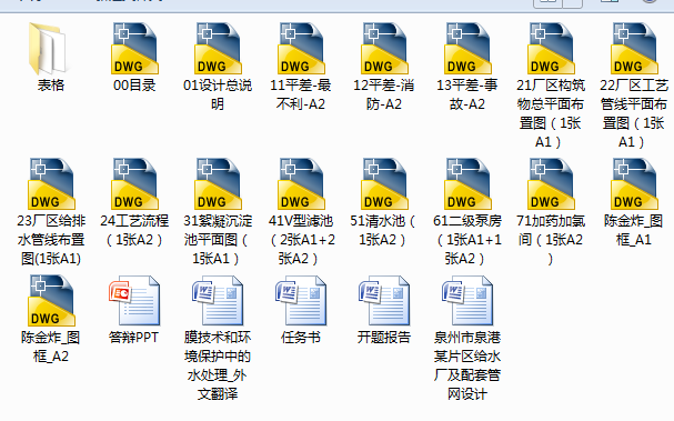 二、对城镇给水处理工艺进行了论述和比选,完成以折板絮凝池、平流式沉淀池、V型滤池为主体的传统工艺设计,并对未来水源水质可能发生变化设计了用于强化絮凝的机械混合池。对水厂的常规工艺进行了详细设计,绘制了约22张A2图纸和一张手绘A2图,在设计说明书对折板絮凝池、V型滤池进行了详细计算。
