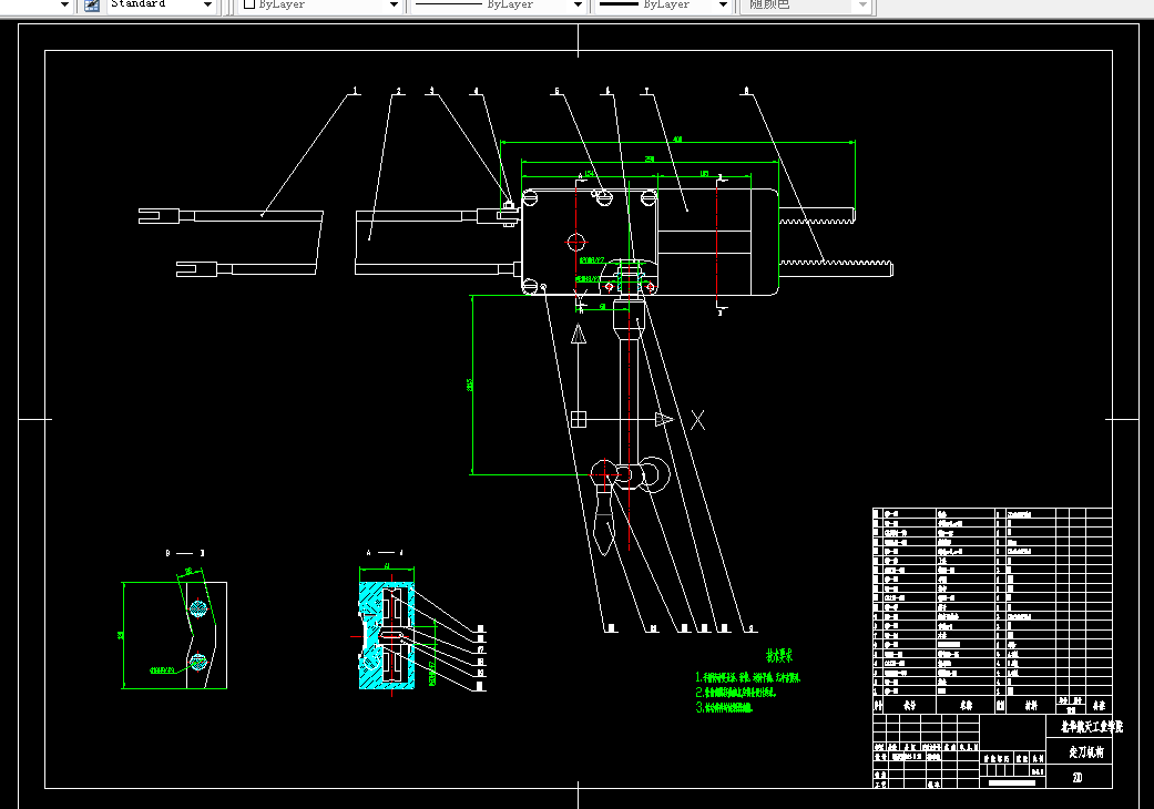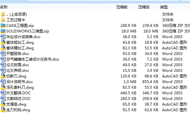 对于空气锤锤体的工装设计,主要掌握刀具,冷却系统,走刀机构等的设计。练习锤体工装的总体设计,方案制定,工艺安排,尺寸计算等。还进行了主要部件的装配及总体装配。