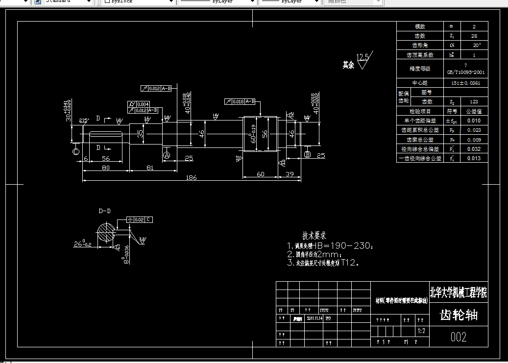 3)绘制传动装置中减速器装配图和箱体、齿轮及轴的零件图。