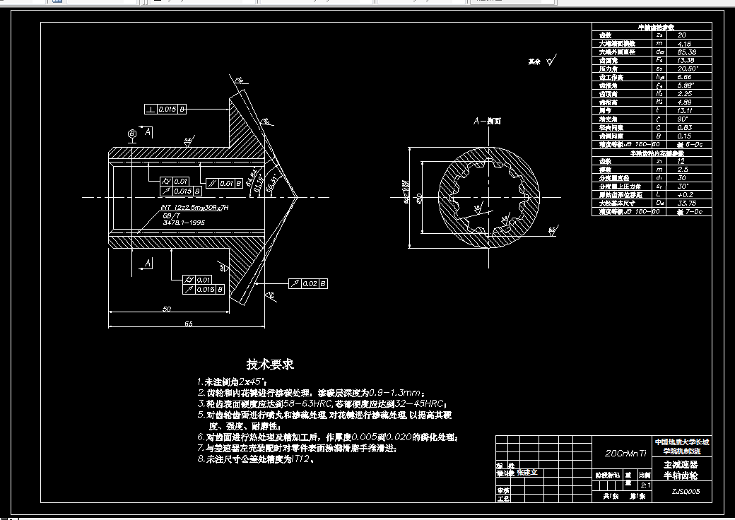 在现代汽车驱动桥上,主减速器的功用是将输入的转距增大并相应降低转速,以及当发动机纵置时还具有改变转矩旋转方向的作用。单级主减速器通常由主动齿轮和从动齿轮组成。在双级主减速器中,通常还要加一对圆柱齿轮或一组行星齿轮。在轮边减速器中则常采用普通平行轴式布置的斜齿圆柱齿轮传动或行星齿轮传动。主减速器采用的最广泛的是螺旋锥齿轮和双曲面齿轮。在某些公共汽车和重型汽车上有时也选用蜗轮传动。本文首先确定主要部件的结构型式和主要设计参数;然后参考类似驱动桥的结构,确定出总体设计方案;最后对主,从动锥齿轮,差速器圆锥行星齿轮,以及对支承轴承进行了寿命校核。本文采用传统的双曲面锥齿轮式单级主减速器作为CA1050的主减速器。