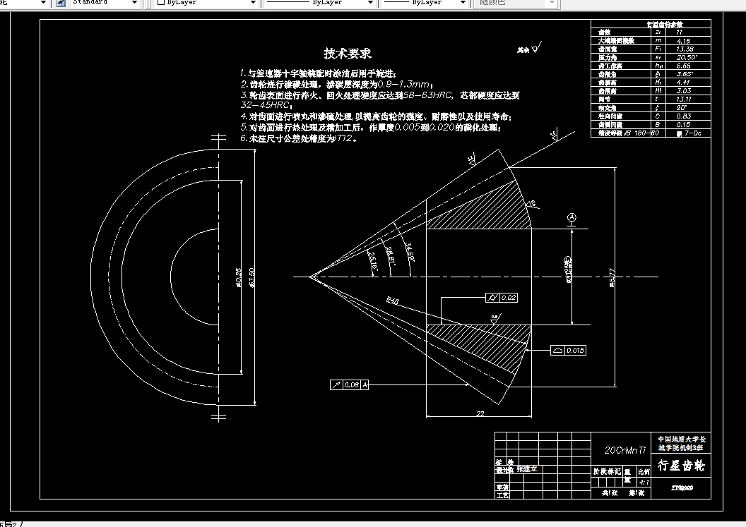 关键词: CA1050; 主减速器; 双曲面锥齿轮; 轴承; 行星齿轮