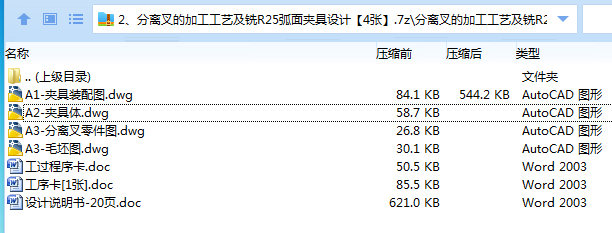 分离叉加工工艺规程及其铣内侧面的夹具设计是包括零件加工的工艺设计、工序设计以及专用夹具的设计三部分。在工艺设计中要首先对零件进行分析,了解零件的工艺再设计出毛坯的结构,并选择好零件的加工基准,设计出零件的工艺路线;接着对零件各个工步的工序进行尺寸计算,关键是决定出各个工序的工艺装备及切削用量;然后进行专用夹具的设计,选择设计出夹具的各个组成部件,如定位元件、夹紧元件、引导元件、夹具体与机床的连接部件以及其它部件;计算出夹具定位时产生的定位误差,分析夹具结构的合理性与不足之处,并在以后设计中注意改进。