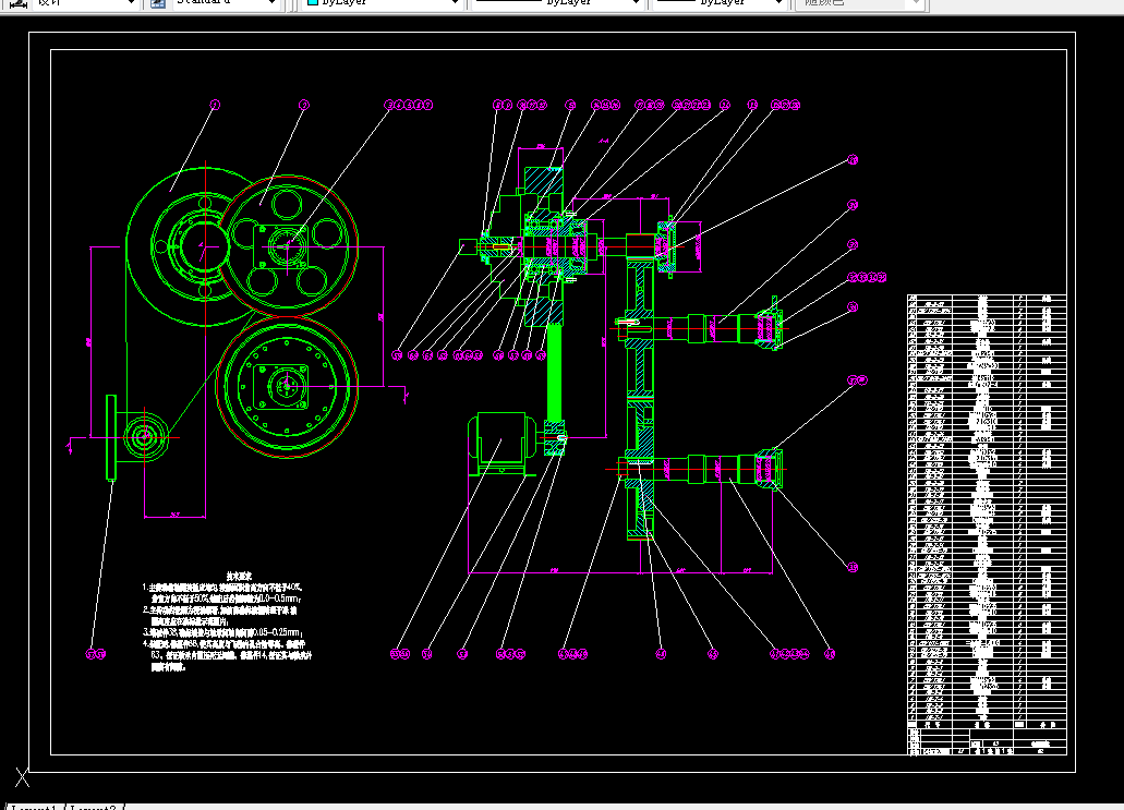 本设计主要是传动部分的设计,其中包括传动形式的设计和传动部件的设计。本设计使用三相异步电动机,传动系统为二级传动系统,电动机通过带传动将动力传递给主传动轴,主传动轴通过齿轮传动将动力传递给曲轴,两根曲轴通过两个相同的齿轮进行联动,从而带动滑块在竖直方向做往复运动。传动部件零件设计主要包括:电动机的选择,飞轮尺寸的设计和校核,齿轮主要参数的设计及齿轮强度的校核,曲柄滑块机构的设计等。