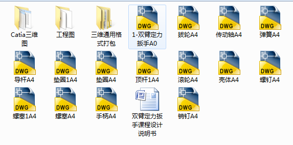 L456-双臂定力扳手课程设计[含Catia三维图] 下载积分:100 资料编号: L456