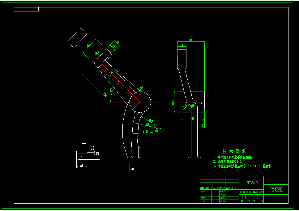 制动杠杆零件加工工艺及夹具设计是包括零件加工的工艺设计、工序设计以及专用夹具的设计三部分。在工艺设计中要首先对零件进行分析,了解零件的工艺再设计出毛坯的结构,并选择好零件的加工基准,设计出零件的工艺路线;接着对零件各个工步的工序进行尺寸计算,关键是决定出各个工序的工艺装备及切削用量;然后进行专用夹具的设计,选择设计出夹具的各个组成部件,如定位元件、夹紧元件、引导元件、夹具体与机床的连接部件以及其它部件;计算出夹具定位时产生的定位误差,分析夹具结构的合理性与不足之处,并在以后设计中注意改进。