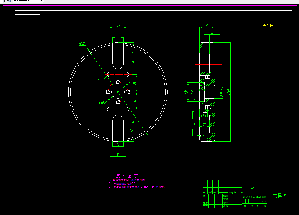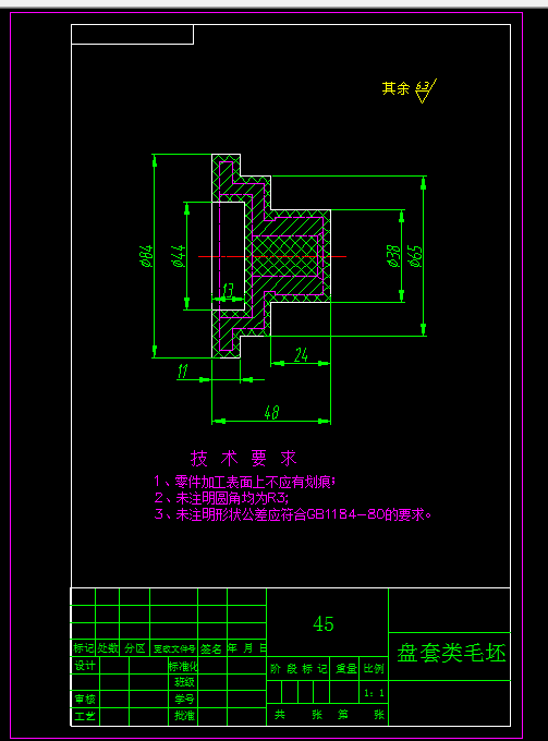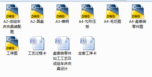 盘套类零件加工工艺及车床夹具设计是包括零件加工的工艺设计、工序设计以及专用夹具的设计三部分。在工艺设计中要首先对零件进行分析,了解零件的工艺再设计出毛坯的结构,并选择好零件的加工基准,设计出零件的工艺路线;接着对零件各个工步的工序进行尺寸计算,关键是决定出各个工序的工艺装备及切削用量;然后进行专用夹具的设计,选择设计出夹具的各个组成部件,如定位元件、夹紧元件、引导元件、夹具体与机床的连接部件以及其它部件;计算出夹具定位时产生的定位误差,分析夹具结构的合理性与不足之处,并在以后设计中注意改进。