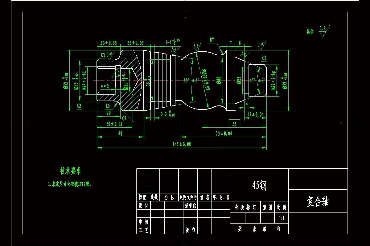本文主要讲述复合轴零件的数控车削加工工艺及其数控编程,开篇首先介绍了数控车床在车削加工中的应用,紧接着对轴套零件图进行分析,再确定其毛坯类型和尺寸、所选用的机床、选择夹具、刀具、量具;在做好这些前期准备后,制定出零件合理的加工工艺路线,确定其切削参数;然后编制出零件的数控加工程序,并用仿真软件对程序的正确性进行验证,再对零件加工中可能出现废品的原因进行分析;最后写出本次毕业设计总结。