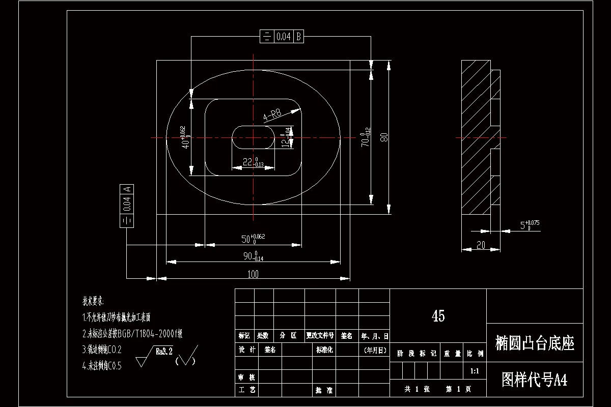 本设计根据数控机床的特点,针对椭圆凸台底座零件,进行了UG建模。设计首先根据椭圆凸台底座零件的图纸及技术要求,对该零件进行了详细的数控加工工艺分析,依据分析的结果,对该零件进行了数控加工工艺设计,拟定了加工方案,选择了加工设备、加工刀具、夹具,确定了装夹方案、切削用量,制定了加工顺序、进给路线,编制了零件的数控加工工序卡片和刀具卡片等。最后,综合运用UG自动编程编制了该零件的数控程序。通过整个工艺的过程的制定,充分体现了数控设备在保证加工精度,加工效率,简化工序等方面的优势。