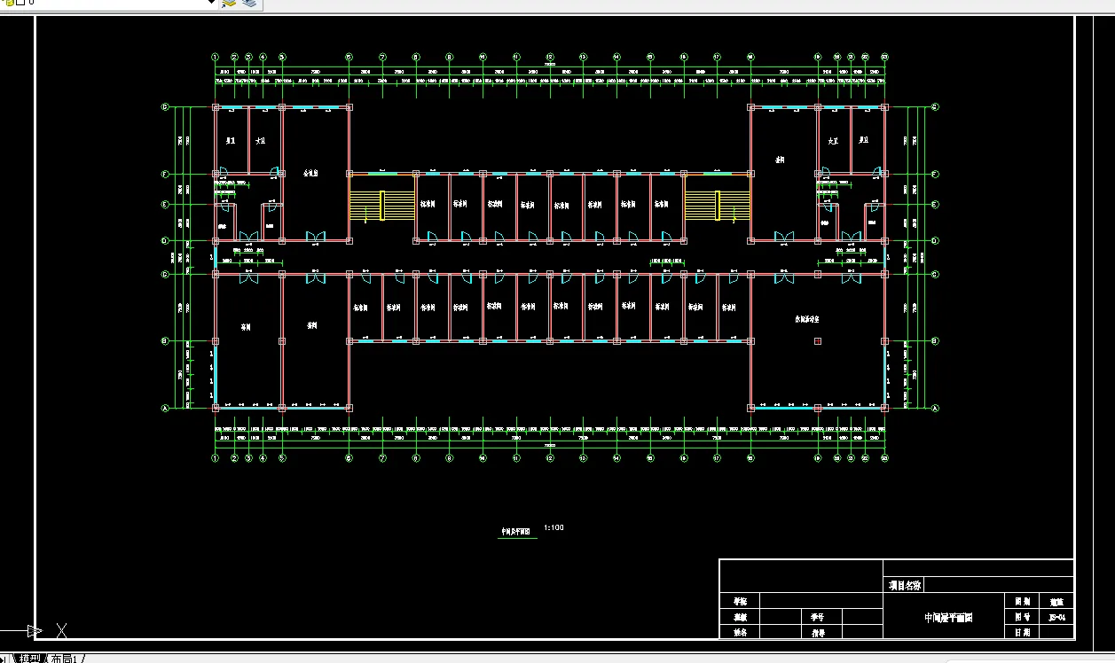 结构设计主要进行了结构方案中横向框架6轴框架的抗震设计。在确定框架布局之后,先进行了层间荷载代表值的计算,接着利用顶点位移法求出自振周期,进而按底部剪力法计算水平地震荷载作用下大小,进而求出在水平荷载作用下的结构内力(弯矩、剪力、轴力)。然后计算竖向荷载(恒载及活荷载)作用下的结构内力,找出最不利的一组或几组内力组合。 选取最安全的结果计算配筋并绘图。此外还进行了结构方案中的室内楼梯的设计。完成了平台板,梯段板,平台梁等构件的内力和配筋计算及施工图绘制。